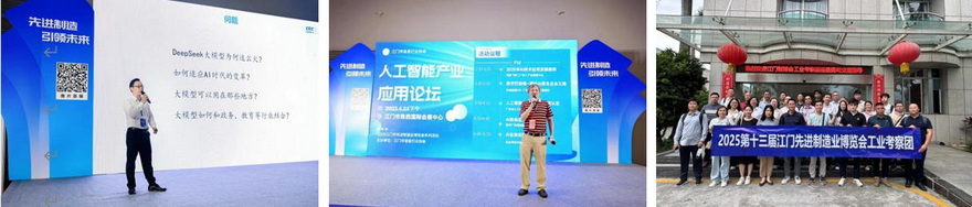 除了展示智能制造全产业链的产品、技术及解决方案外,同期还举办了"人工智能产业应用论坛"、"数智降本增效,全域矩阵增长-讲座"、"蓬江区2025惠企政策宣讲会"、"AI赋能制造业新增长,AI全域获客新玩法-讲座"、"江门名企工业考察"等多场高质量活动,集中汇聚行业关注的新趋势、新发展、新角度...通过多元的角度分享实战经验。
