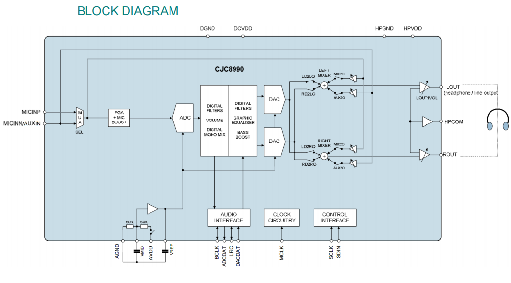 音频芯片 - CJC8990的特性: