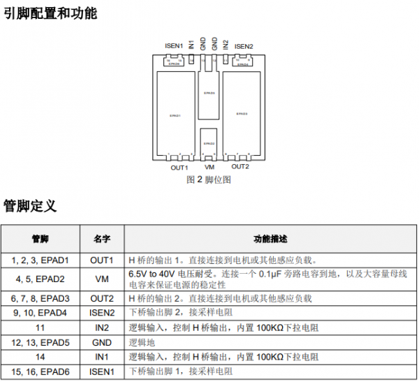 两路逻辑输入(IN1/IN2)控制H 桥输出