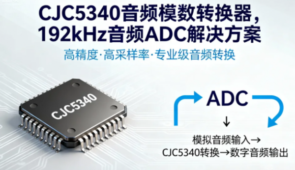 数字音频系统设计与高保真音频采集模数转换器(ADC)的性能决定音质的纯净度与还原度,由工采网代理的CJC5340是一款集高性能、高集成度与高可靠性于一体音频模数转换器,为专业音频设备与消费级高保真产品提供卓越的模拟信号数字化解决方案。