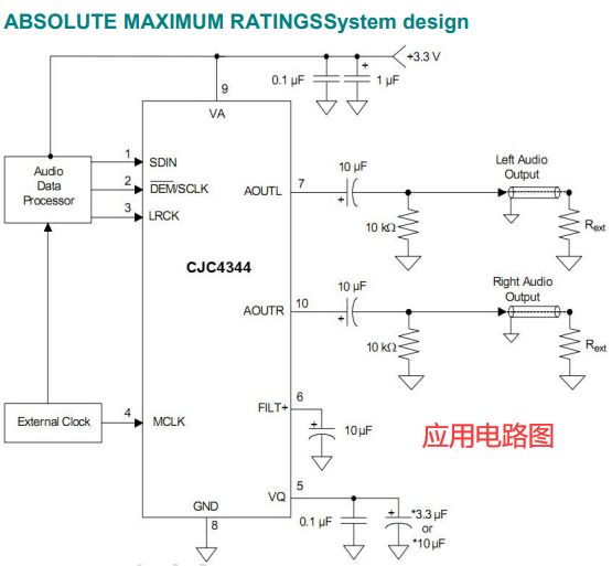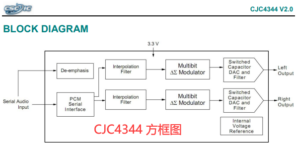 CJC4344是一款性能优异、集成度高、易于使用的立体声音频DAC解决方案,无论是多媒体播放器、游戏机还是数字电视,该器件都能在紧凑的板级空间内提供出色的音频回放质量,如需获取详细电气参数与应用电路,数据手册可联系工采网(代理商)