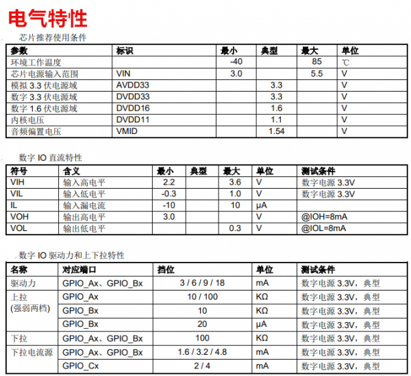 电源:单电源 3.0V~5.5V 供电,内置多路 DCDC/LDO,支持多种低功耗模式(Deepsleep 功耗极低,USB 可唤醒)