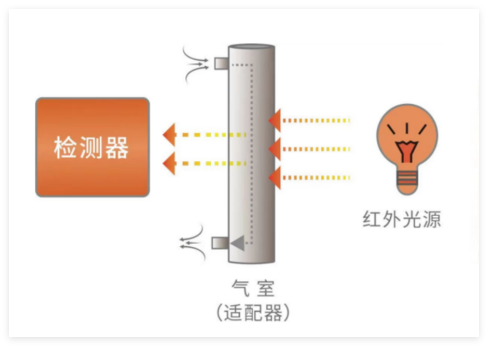 临床最常用的方法是红外线吸收法,其基本原理是利用CO2分子对红外线的吸收特性来测定其浓度。当气体通过红外线传感器时,红外线光源的光束会穿过气体样本,并由红外线检测器测量光束量。由于CO2能够吸收特定波长的红外线(4.26μm),因此光束量的衰减程度与CO2浓度成正比。